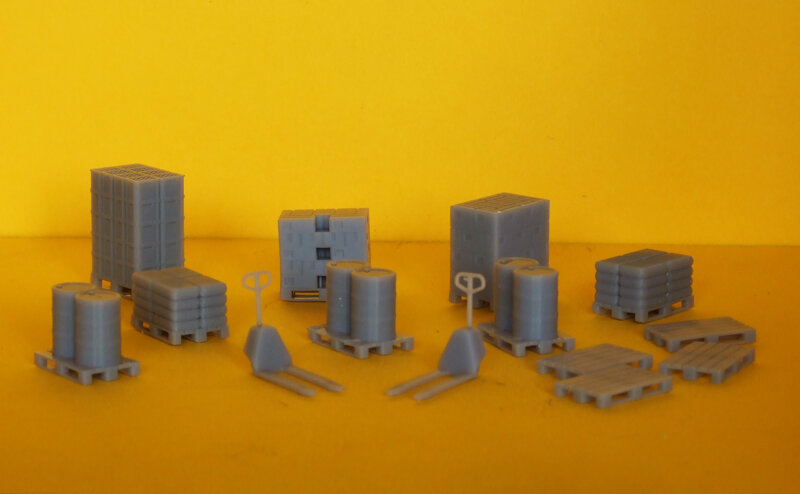 H0-1:87 Pallet con carico + transpallet 14pz. HO - 1/87 Krea