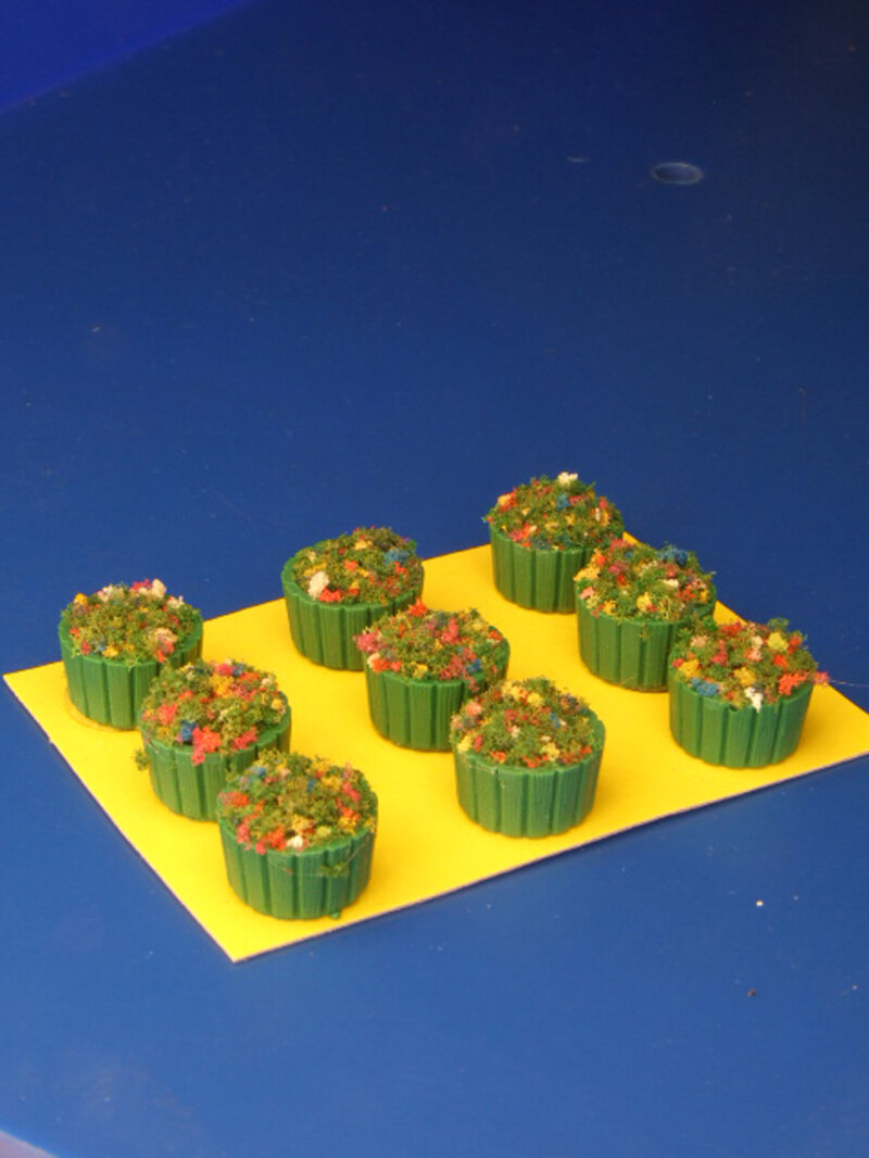 Vasi in legno verde, fioriti rotondi scala 1/87 o 1/160